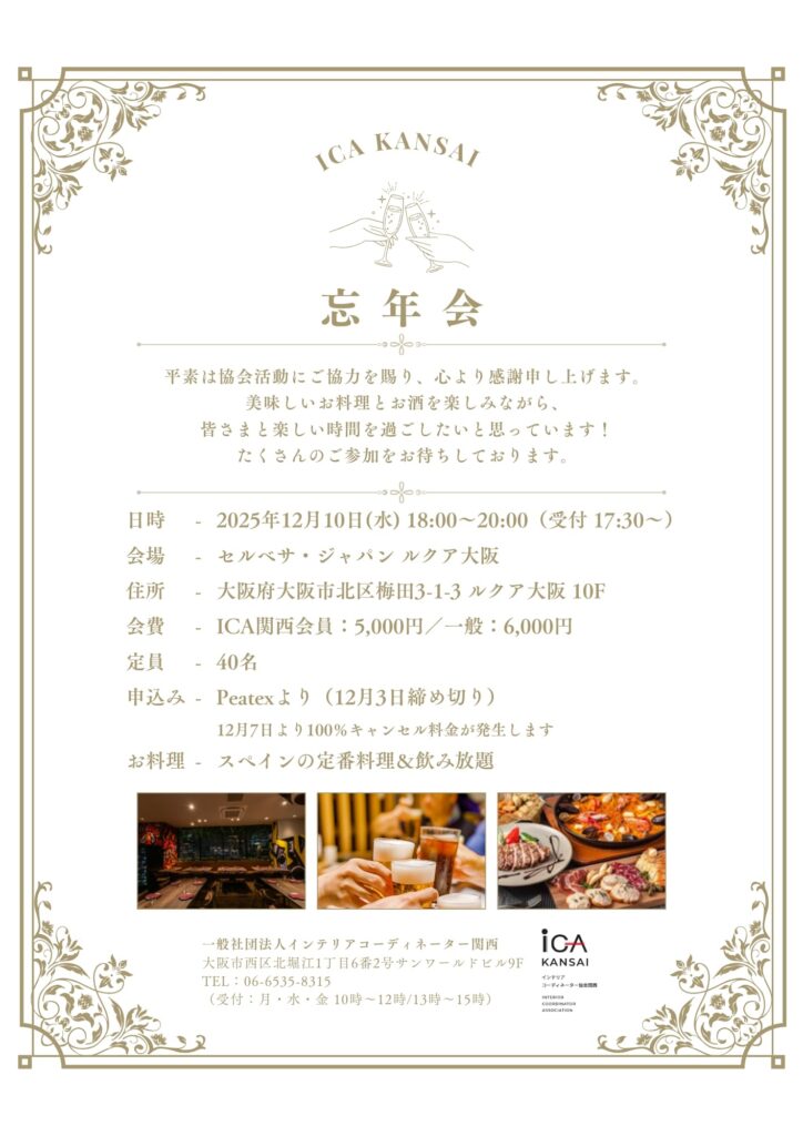インテリアコーディネーター協会関西 2025年忘年会のご案内