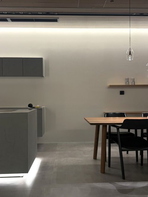 近頃の住宅はLDK空間を広くとり、同じ空間にいながら家族が各々異なることをする傾向にあるため、従来の「一室一灯」から、「多灯分散」と言う考え方になっており、そういう面でもライン照明は広いLDK空間にスッキリ配置できるということが分かりました。